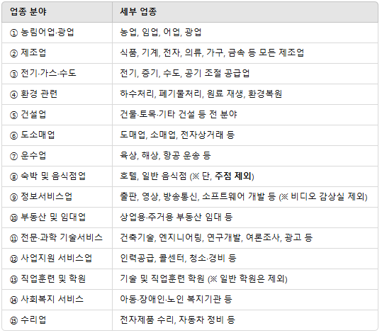 **“어떤 기업에 취업했는지”**와 그 기업이 어떤 업종을 영위하는지에 따라 감면 가능 여부가 달라집니다.