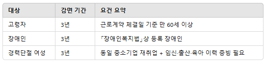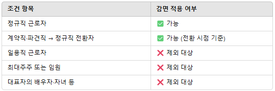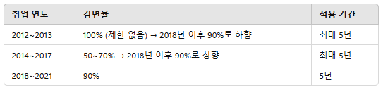 💡   중요 포인트: 재취업자도 연속적이지 않아도 감면 가능.