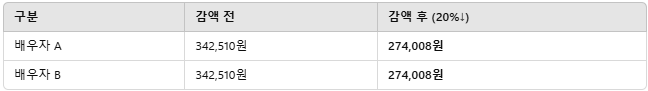 • 부부 각각에게 지급되는 연금액에 **부부감액(20%)**을 먼저 적용한 뒤
